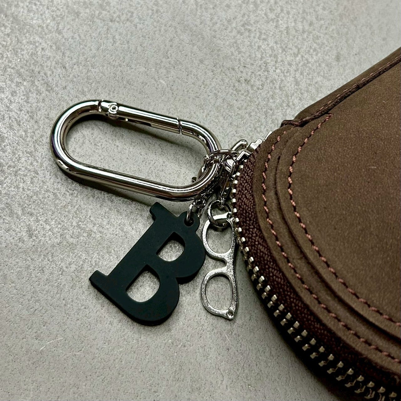 バッグに取り付けができるよう、取り外し可能な楕円のカラビナ付きなので、チャームのようにバッグにぶら下げたり、お手持ちのストラップなどつけて斜めがけにアレンジも。