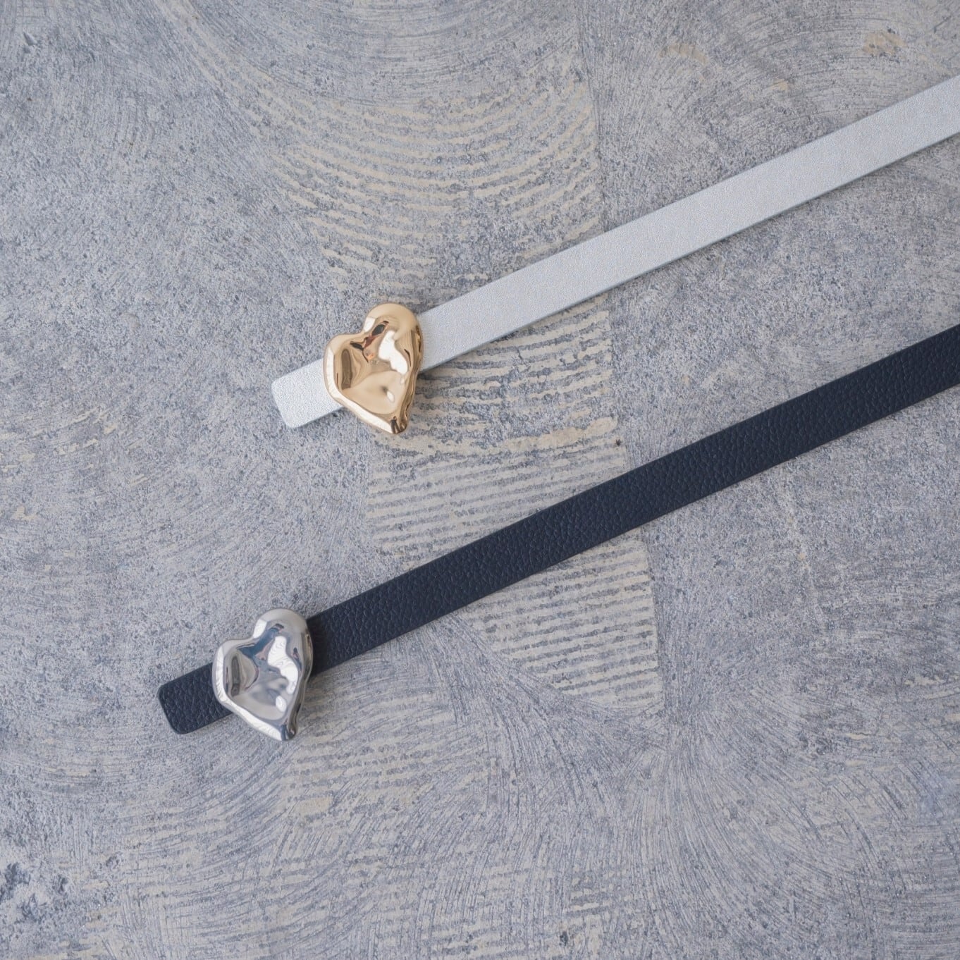 凹凸があることでハートでありながら甘くなりすぎず金属の艶感がリッチな印象に。
