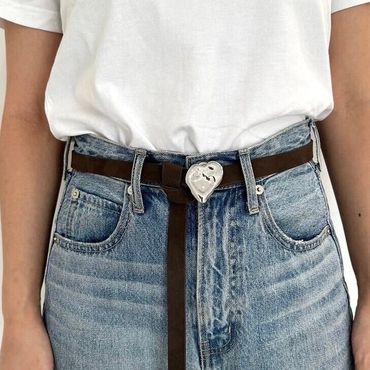 Nabel×hiros23コラボ ハートベルト:ヌバックロングブラウン×シルバーメッキ